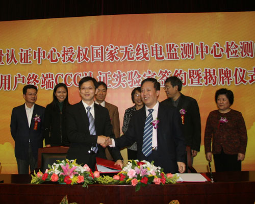 10月23日消息,日前,中國質(zhì)量認證中心授權(quán)國家無線電監(jiān)測中心檢測中心(SRTC)移動用戶終端CCC認證實驗室簽約暨揭牌儀式,在北京隆重舉行。中國質(zhì)量認證中心王克嬌主任、陳偉副主任,中國國家認證認可監(jiān)督管理委員會徐秋媛副處長、國家無線電監(jiān)測中心主任劉巖、國家無線電監(jiān)測中心副主任薛永剛、國家無線電監(jiān)測中心檢測中心主任宋起柱,以及來自上述單位的部門領(lǐng)導(dǎo)、客戶代表及媒體朋友100余人出席了簽約儀式。