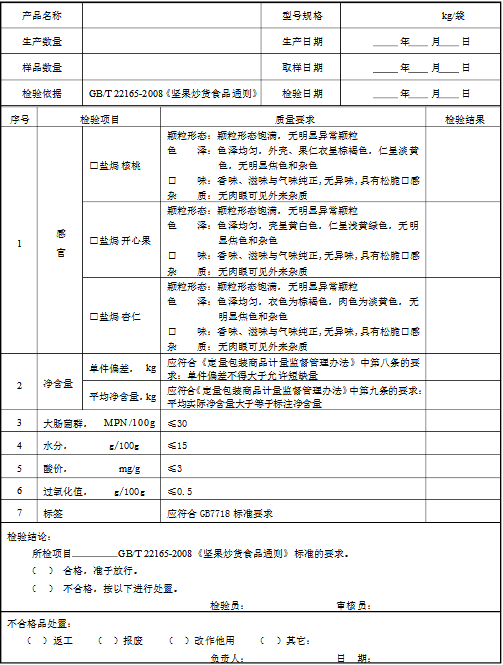 食品質(zhì)檢報告: